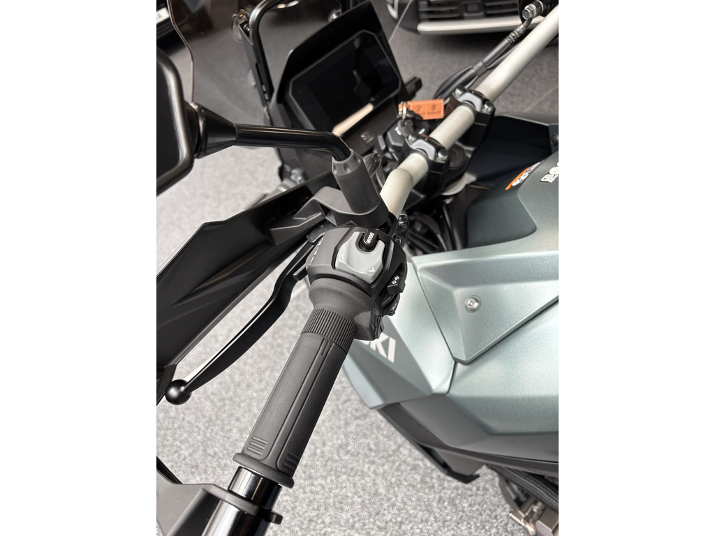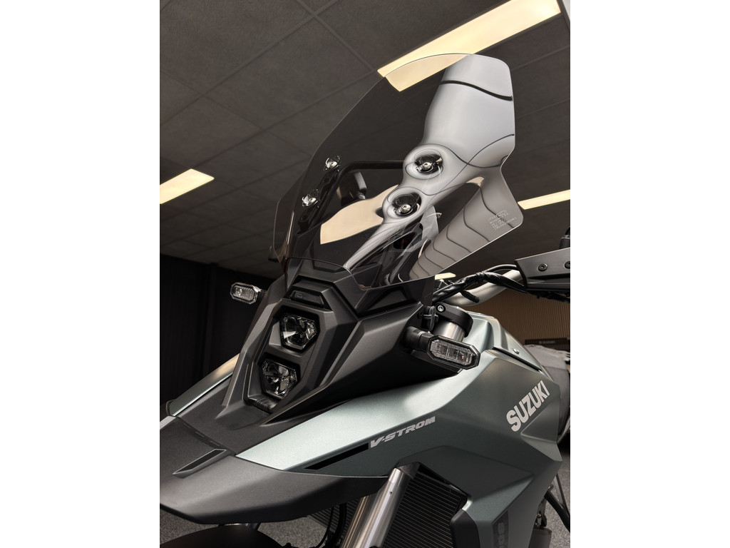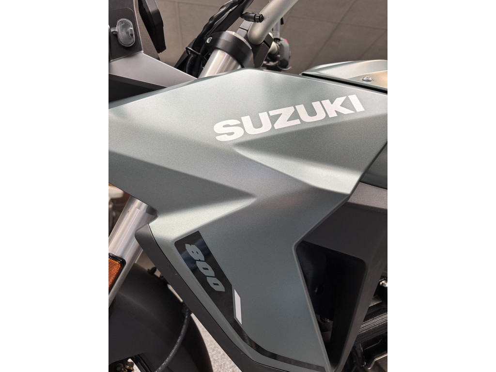 Schiterende V-Strom 800 in de gave kleur Metallic Mat Steel Green.