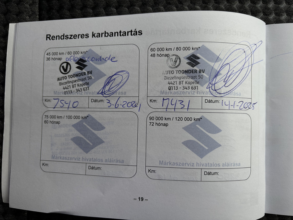 Fabrieksgarantie t/m 19-01-2032. Mits jaarlijks onderhoud volgens fabrieksvoorschrift bij een Suzuki-dealer, kijk voor de voorwaarden op suzuki.nl